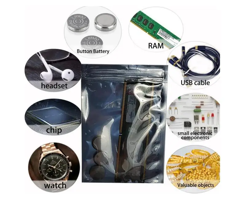 10pcs anti static bag suitable for laptop hard drives, headphones, button batteries, and other electronic components, and some small items.