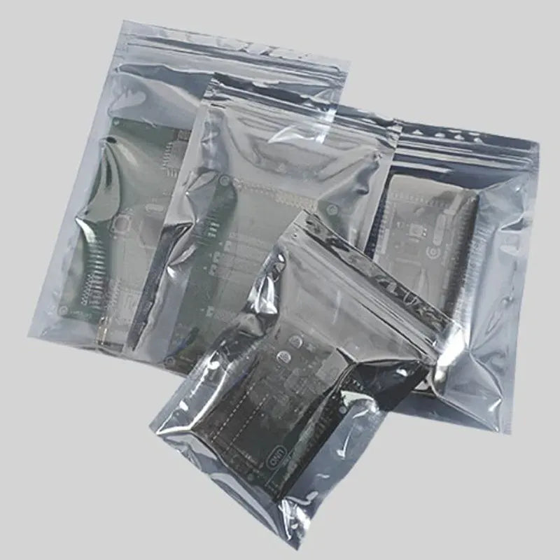 The anti static bag is made of polyethylene terephthalate (PET), which is durable, reusable, has a translucent silver-gray color