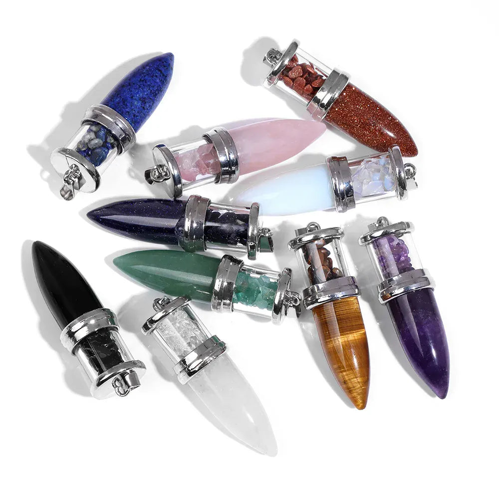 1pc Bullet shape Stone Pendant for Men Reiki Women Making Necklace Accessory Natural Quartz Jades Pendant