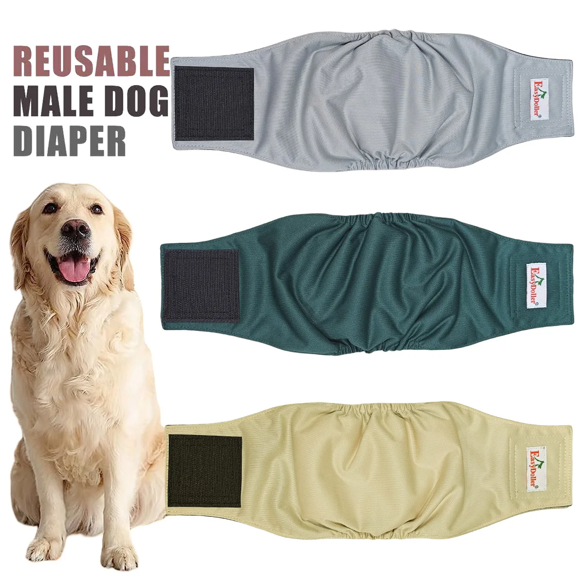 3 Pack Washable Reusable Male Dog Diaper Pet Dog Sanitary Pants Nappy Belly Band Wrap Leak Proof Dogs Pee Pant Diapers For Puppy