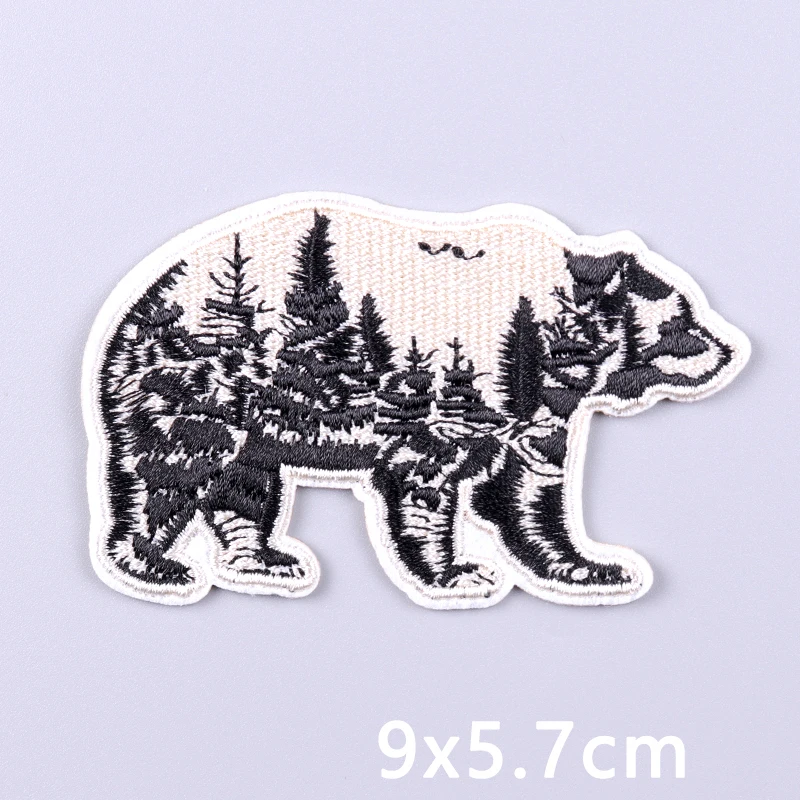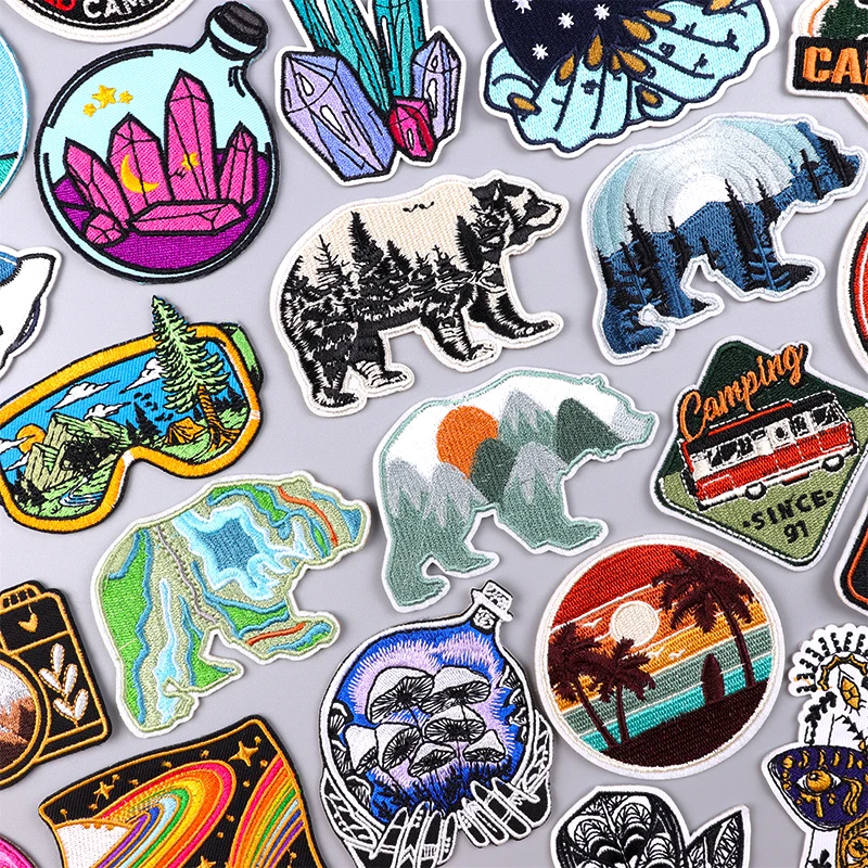 Animal Mountains Applique Embroidered Patches For Clothing Stickers Nature Travel Patch Iron On Patches On Clothes Fusible Patch