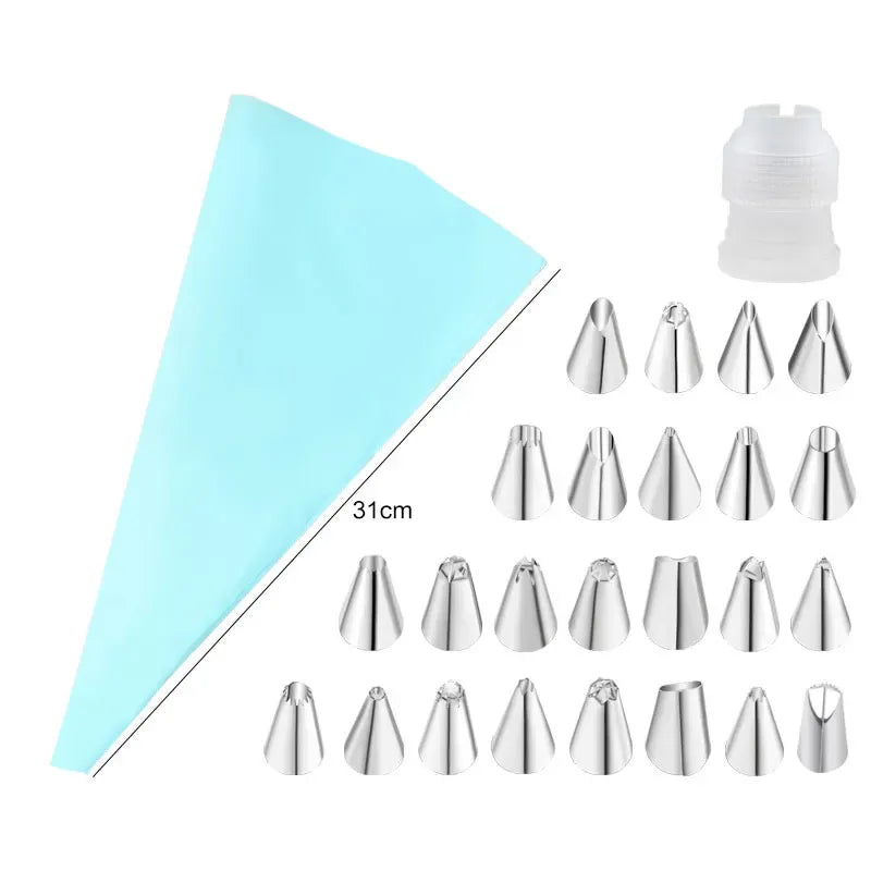 1.Resuable confectionery pastry bag with series different type cream nozzles and 1Pcs converter.