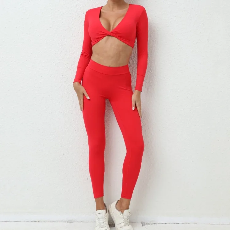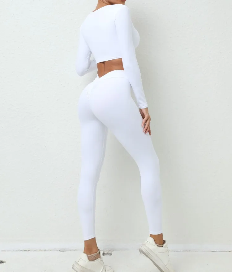 Seamless Yoga Sets Sports Fitness High Waist Hip-lifting Trousers Nude Feel Long-Sleeved Suit Workout Gym Leggings Set for Women
