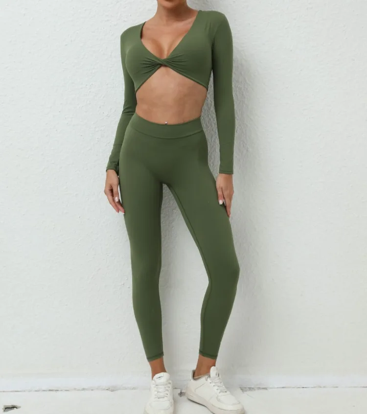 Seamless Yoga Sets Sports Fitness High Waist Hip-lifting Trousers Nude Feel Long-Sleeved Suit Workout Gym Leggings Set for Women