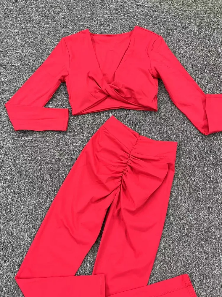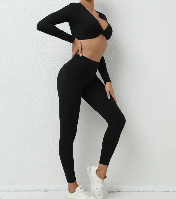 Seamless Yoga Sets Sports Fitness High Waist Hip-lifting Trousers Nude Feel Long-Sleeved Suit Workout Gym Leggings Set for Women