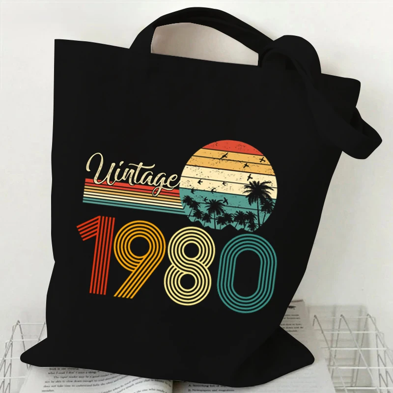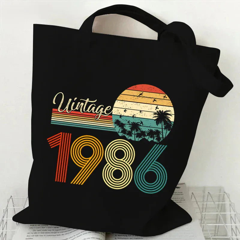 Vintage 1984 Tote Bag Vintage 1980~1989 Tote Bags Canvas Shoulder Bags Reusable Foldable Large Capacity Shopping Bag