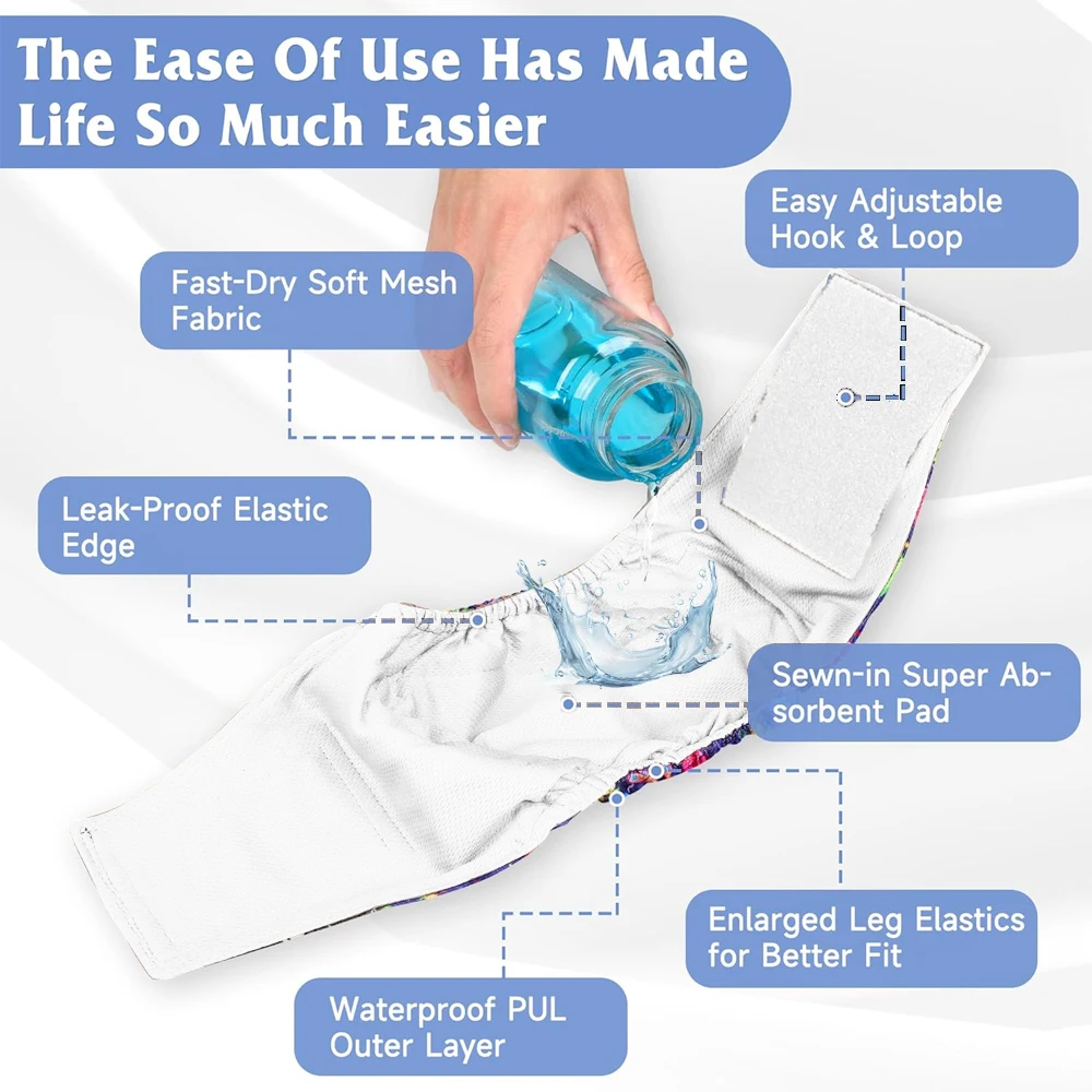 Washable Pet Dog Diapers Males Absorbent Adjustable Puppy Big Dog Physiological Pants for Dogs Reusable Pets Dogs Panties Shorts