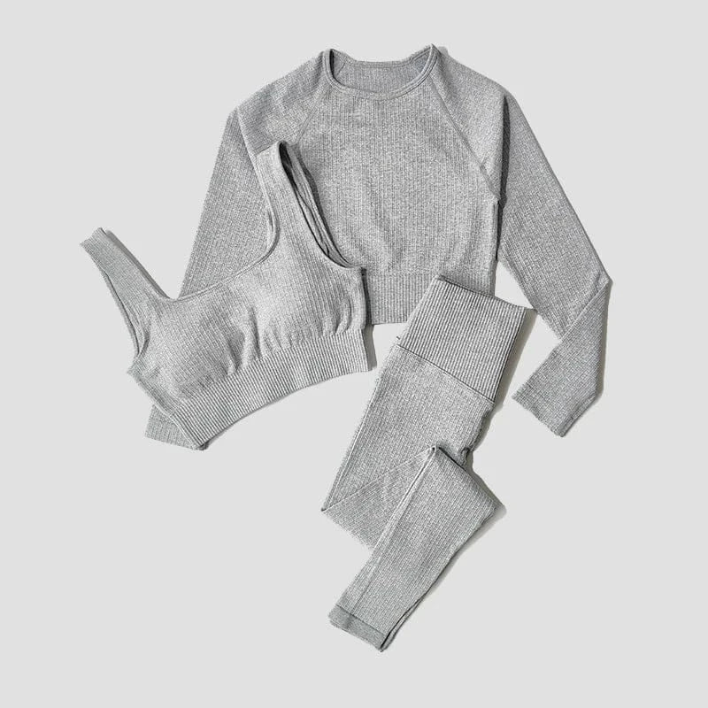 Yoga Set Seamless Women's Sportswear Workout Clothes Athletic Wear Gym Legging Fitness Bra Crop Top Long Sleeve Sports Suits